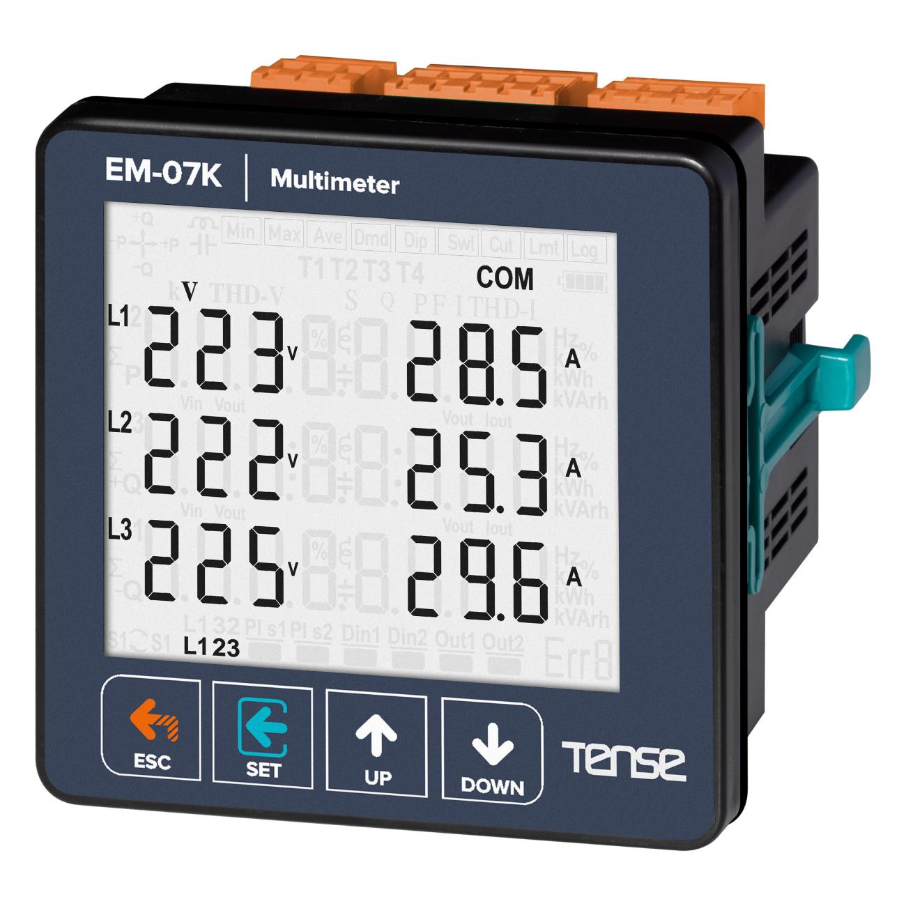 Multímetro trifásico - Medidor de painel digital multifunções trifásico, indicador de corrente, tensão, frequência e potência total, energia kW*h e ModBus RTU fabricante TENSE (Turquia), medidores de painel.