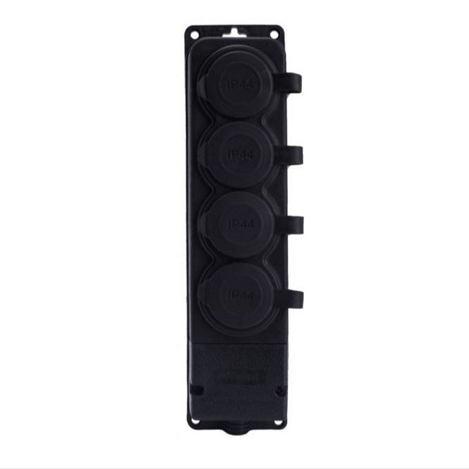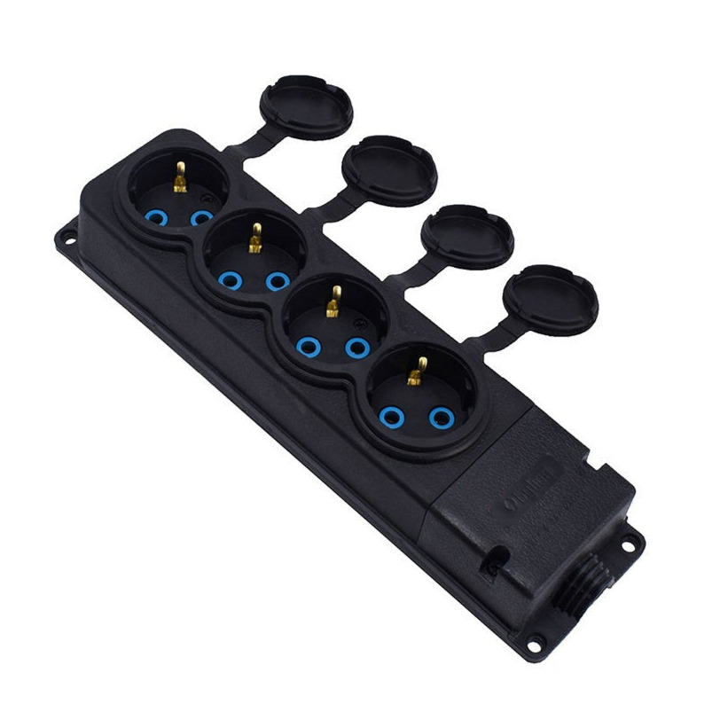 A tomada de borracha autónoma pode ser utilizada como tomada de instalação automática numa parede ou em qualquer outra superfície, tem 4 tomadas (2P+E) com uma cobertura de borracha contra água, salpicos e pó. O conetor do cabo está escondido sob a tampa desaparafusável. Um passa-cabos de borracha incorporado é utilizado para a passagem dos cabos. Secção transversal máxima do cabo 3*2,5m Possui um orifício para pendurar facilmente e 4 orifícios para parafusos utilizados para montagem fixa na estação de trabalho.