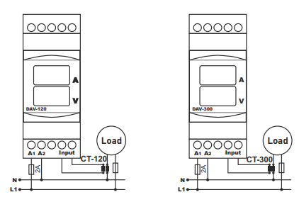 O DAV-72D é um voltímetro-amperímetro digital combinado monofásico, concebido para a monitorização contínua da tensão CA entre a fase e o condutor neutro e da corrente de carga consumida, medida por um transformador de corrente externo (CT-120, incluído). O instrumento é adequado para quadros eléctricos, instalações de produção e sistemas de distribuição ou monitorização de energia.