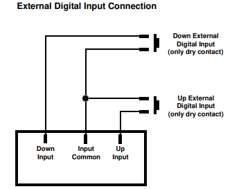 • Controlo do utilizador: Através das teclas para cima/para baixo do painel frontal ou das entradas digitais para cima/para baixo