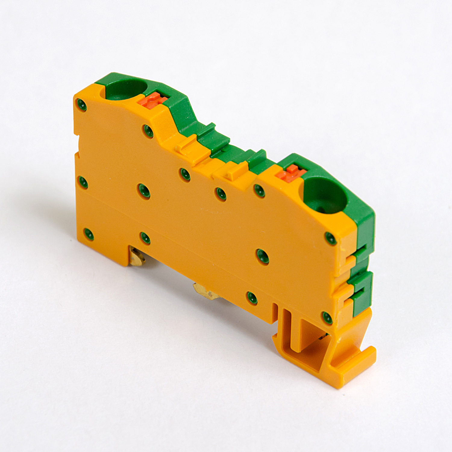 Conector de barramento de mola PE / terminal de carril DIN de 2 fios verde-amarelo, ONKA, fabricado na Turquia