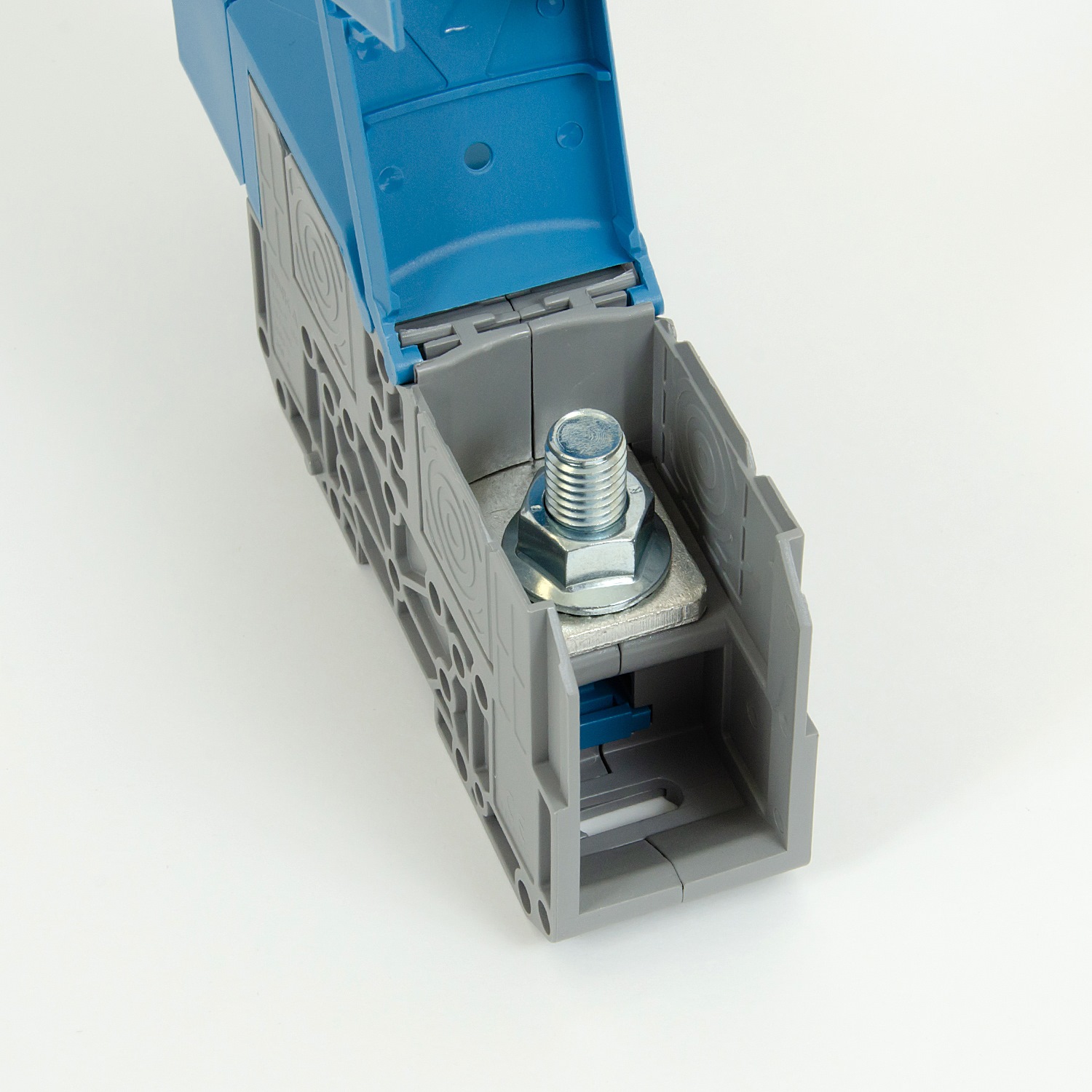 M12, 150mm2, conetor roscado para carril de barramento / terminal para carril DIN com tampa de proteção, azul, ONKA, fabricado na Turquia
