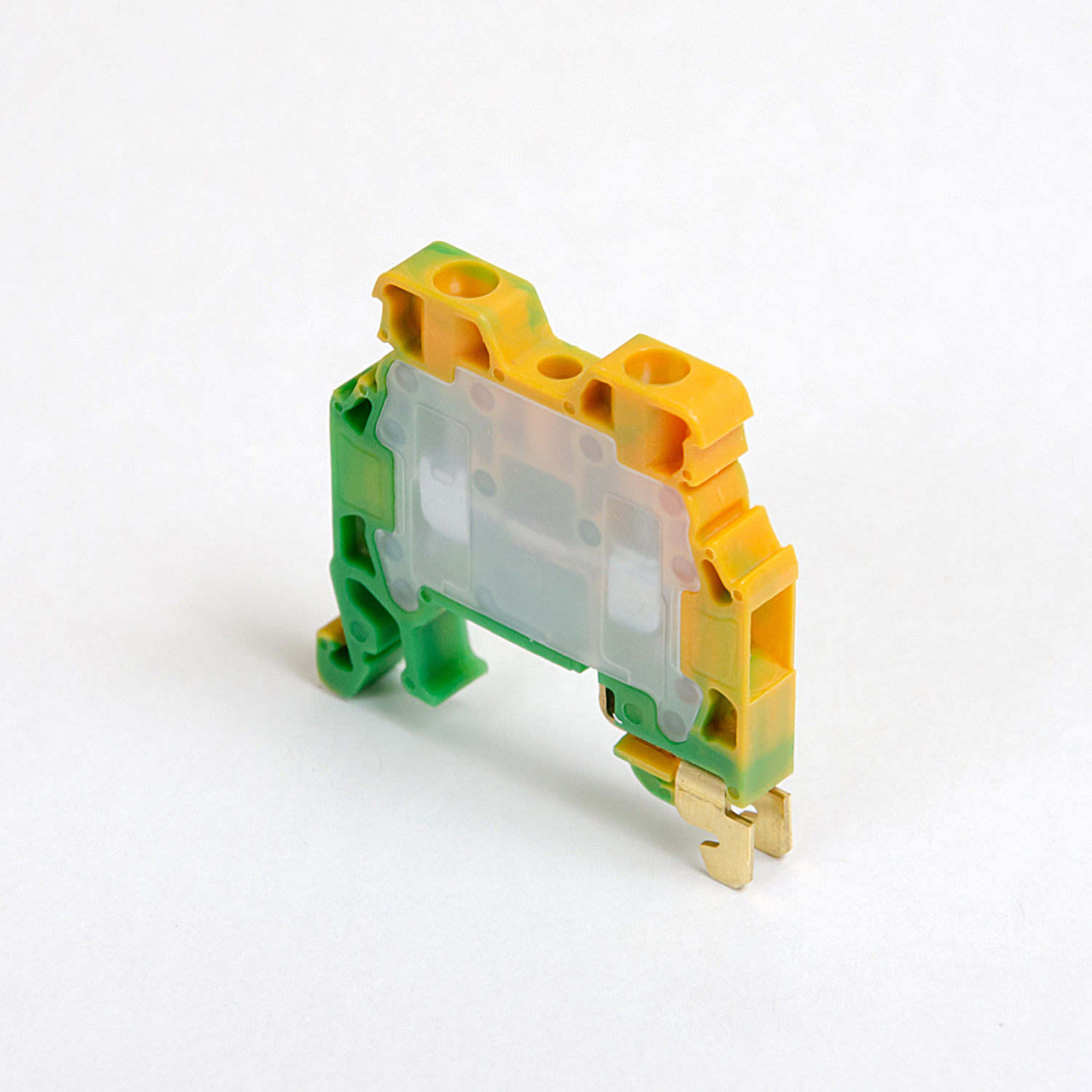 Conector roscado PE para carril de barramento / terminal de carril DIN de 2 fios verde-amarelo, ONKA, fabricado na Turquia