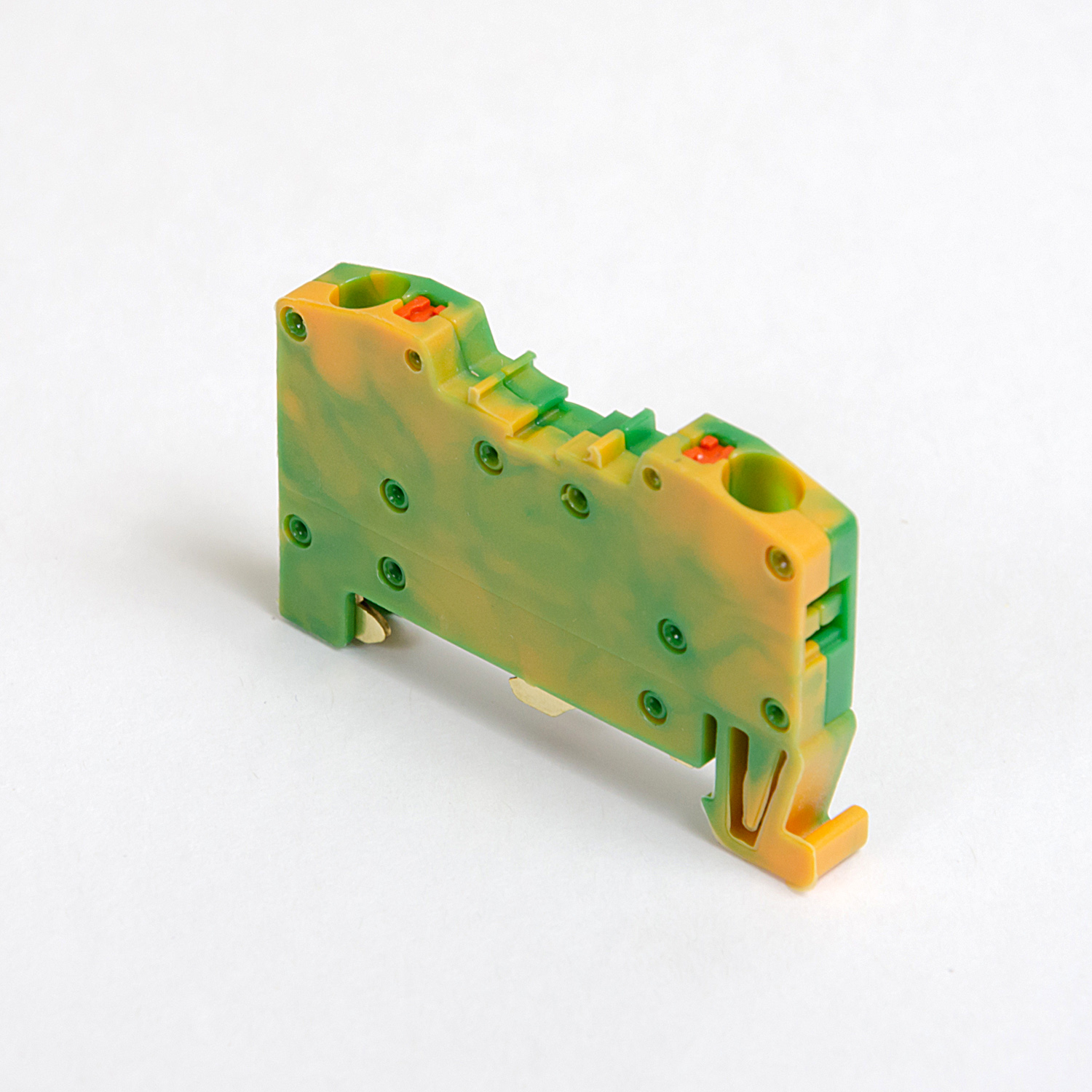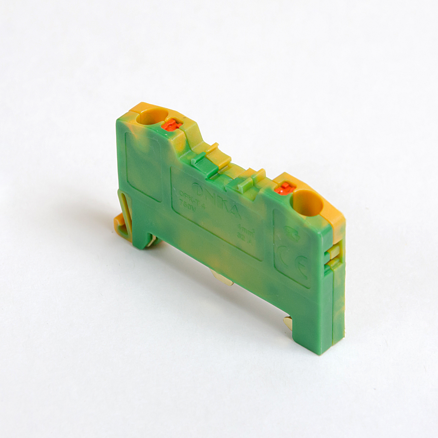 Conector de barramento de mola PE / terminal de carril DIN de 2 fios verde-amarelo, ONKA, fabricado na Turquia