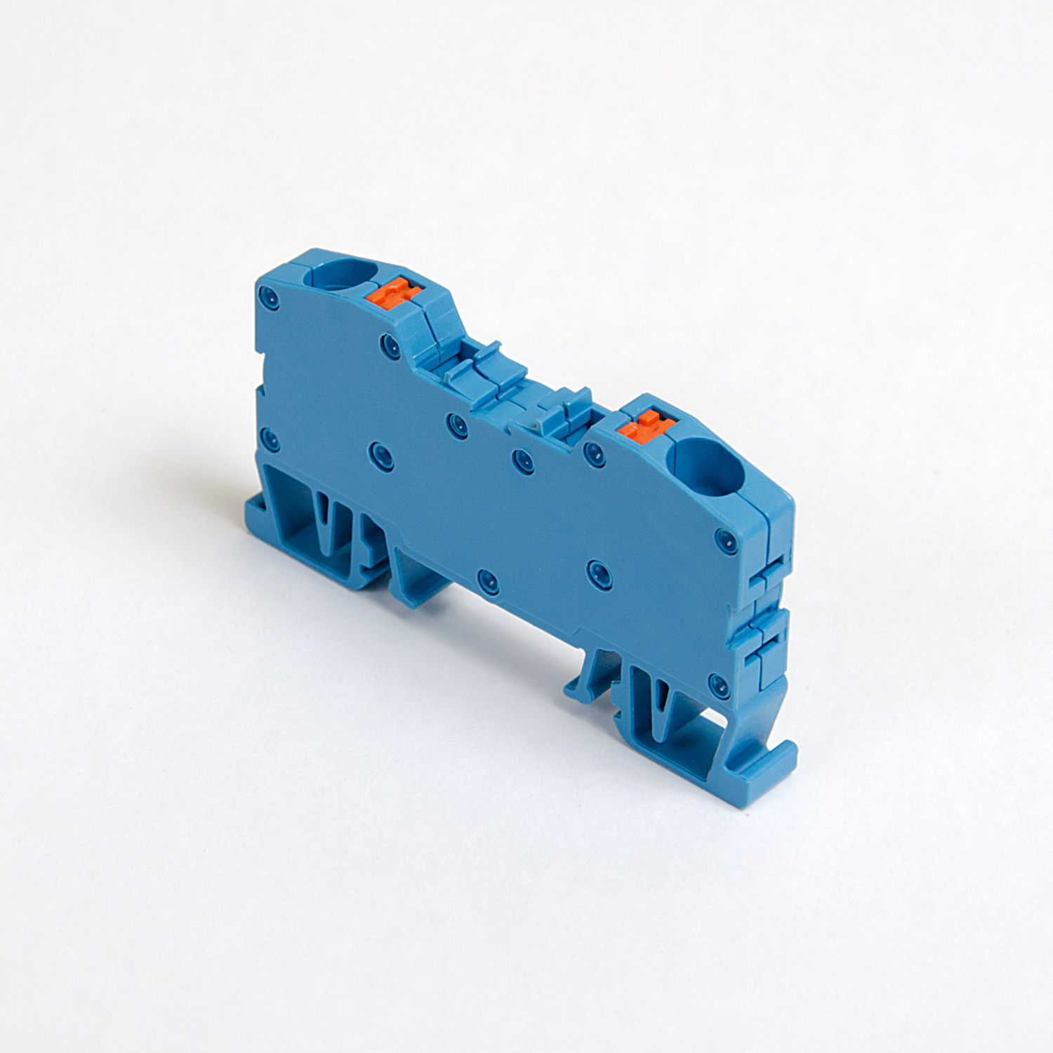 Spring busbar rail connector / DIN rail terminal 2-wire, retractable contact, blue, ONKA, made in Turkey.