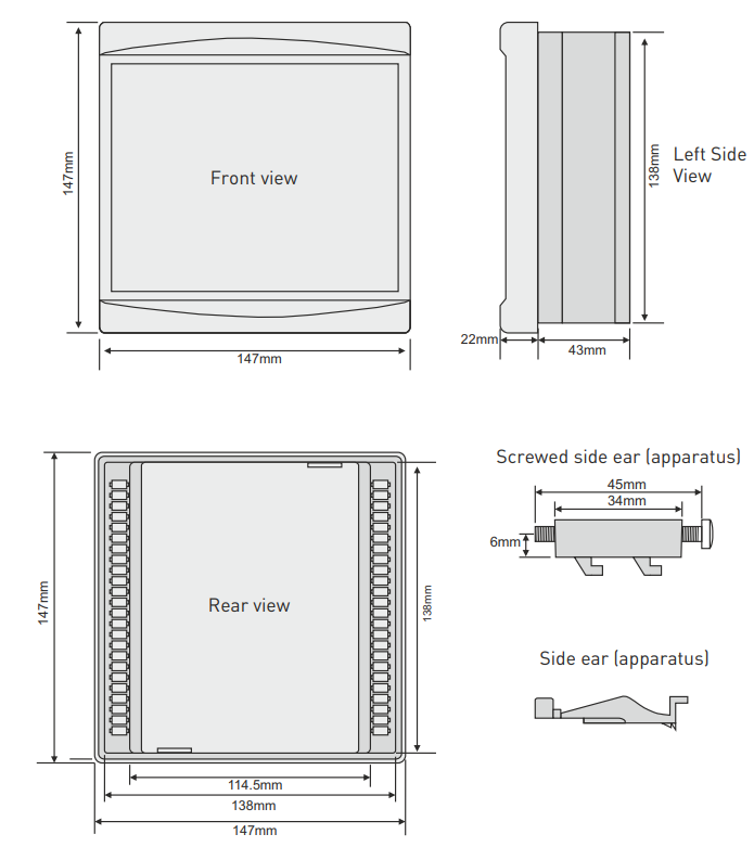 • Classe de proteção:IP41 (painel frontal), IP20 (caixa)