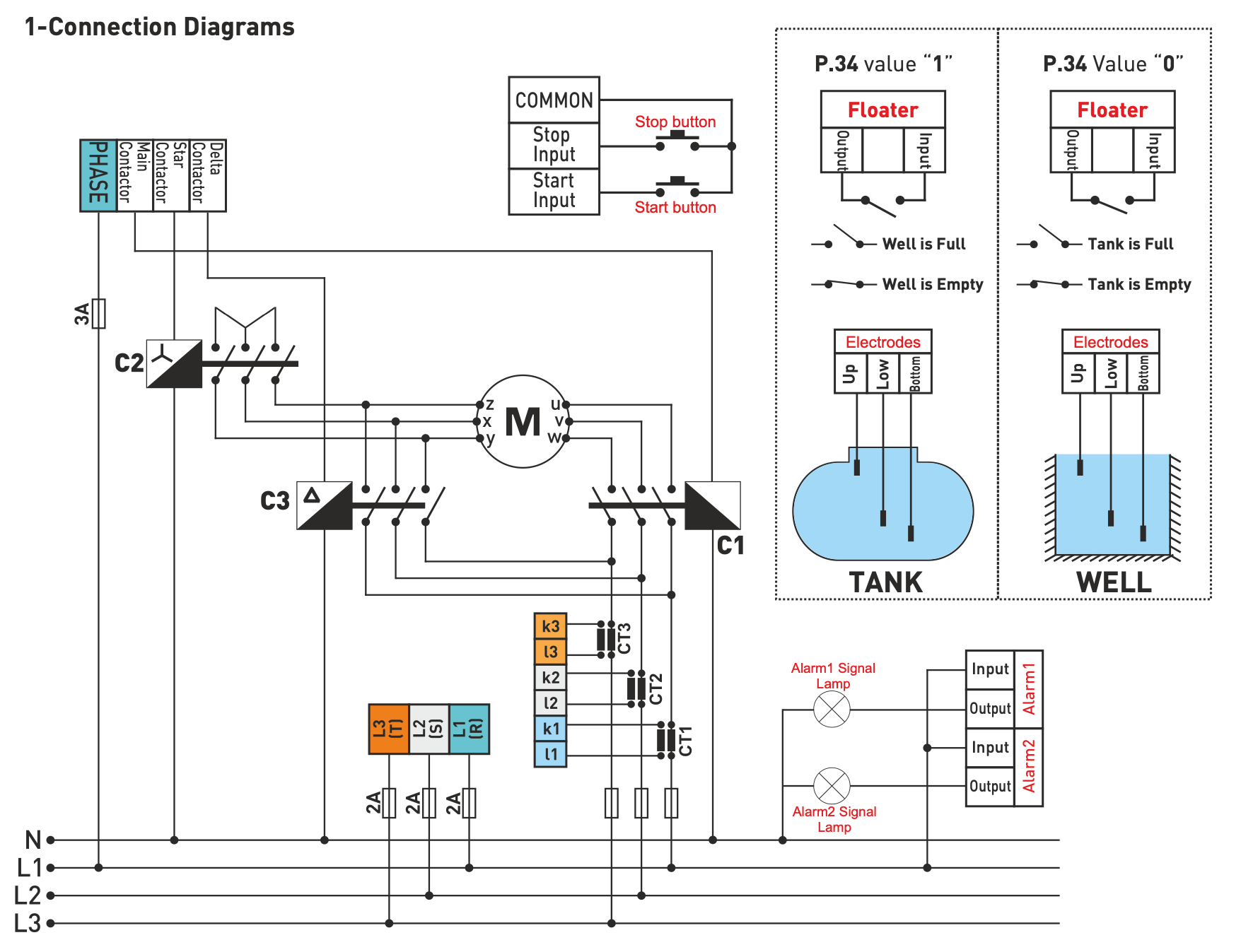 • 1A – 120A (TDK-01) / 2A – 300A (TDK-02) submersible pump.